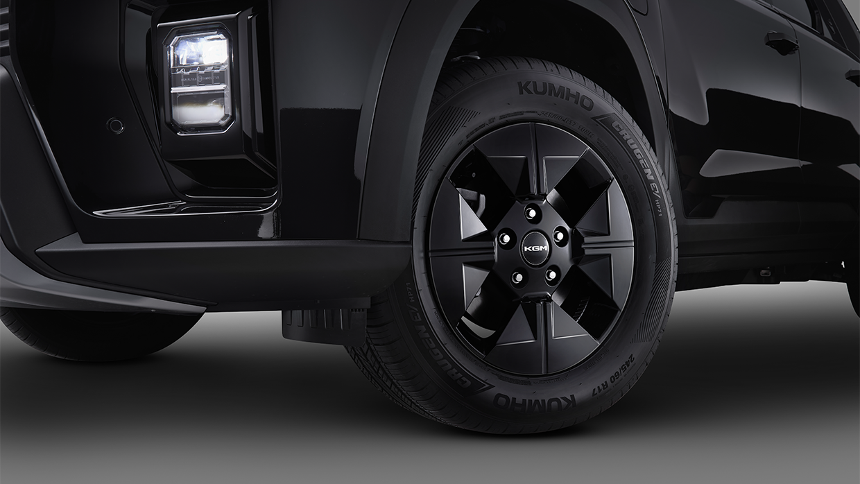 Zwischen dem Basismodell mit Frontantrieb und dem Musso EV mit Allradantrieb der Spitzenklasse sitzt der Black Edge nur mit Frontantrieb, der die folgende Ausstattung hinzufügt: