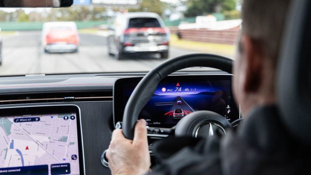 - Die Ingenieure von Mercedes-Benz erklärten, dass die Autonomiestufe 3 des SAE-Standards – bei der ein Auto freihändig auf der Autobahn fahren kann – auf dem Weg nach Australien. In einigen Rechtsgebieten ist es bereits legal, beispielsweise auf deutschen Autobahnen und in Kalifornien (USA), wo es auf maximal 40 mph (64 km/h) beschränkt ist und nur tagsüber verwendet werden darf.