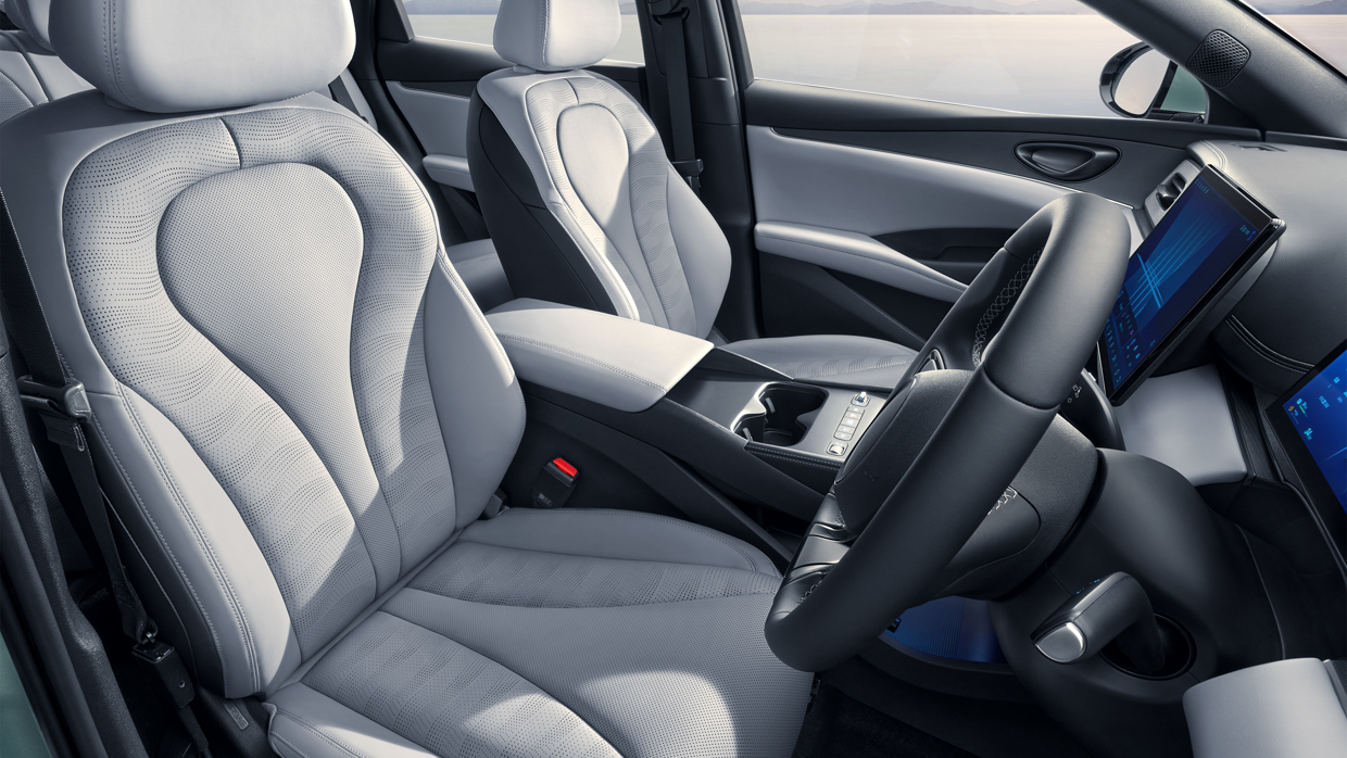 Im Inneren beider Seal 6-Modelle befindet sich ein 8,8 Zoll digitales Kombiinstrument, a 12,8 Zoll Infotainment-Touchscreen, sieben Airbags und eine Reihe von Fahrerassistenzsystemen, darunter adaptive Geschwindigkeitsregelung, autonome Notbremsung, Überwachung des toten Winkels und mehr.