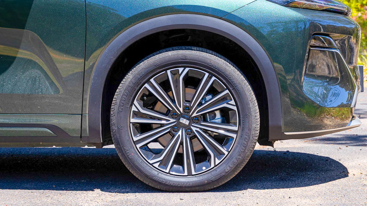 Die Bremsleistung ist dank Markenreifen von Goodyear ausreichend 19-Zoll-Legierungenwobei der Geely in 37,4 Metern aus 100 km/h stoppte.
