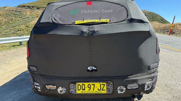 Es gab noch mehr Tarnung, die die Karosserielinien des Tucson verdeckte, auch was scheinbar der Fall war Messgeräte an der Heckscheibe. Der Tucson hat außerdem einen unvollendet aussehenden Auspuff, der aus der hinteren Stoßstange herausragt.