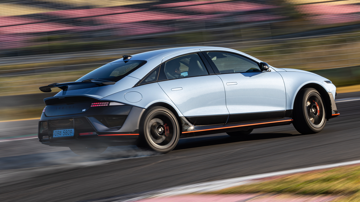 Aber wo Rivalen und sogar Geschwister Schwierigkeiten haben, sich durchzusetzen 400 kW (mit Ausnahme von Teslas 461 kW/730 Nm ‚3) kann sich die neue Performance-Limousine von Hyundai rühmen 448 kW Und 770 Nm – eine ungeheuerliche Zahl, die auf erhöht wird 478 kW mit aktiviertem „N Grin Boost“.