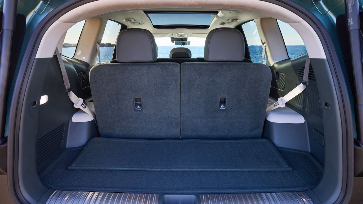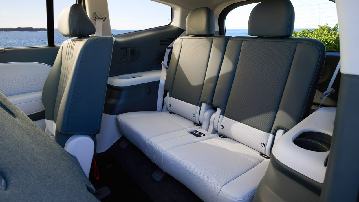 Die zweite Reihe ist sehr geräumig und luftig, unabhängig davon, ob es zur Bank eines Siebensitzers oder der Kapitänsstühle eines Sechssitzers passt. Und mit der elektrisch heftigen dritten Reihe macht der Ioniq 9 einen höllischen geräumigen und geräumigen Fünf- (oder vier-) Sitzer als die 338-Liter-Boot Erweitert sich auf satte 908 Liter mit einem fast vollständig flachen Lastraum.