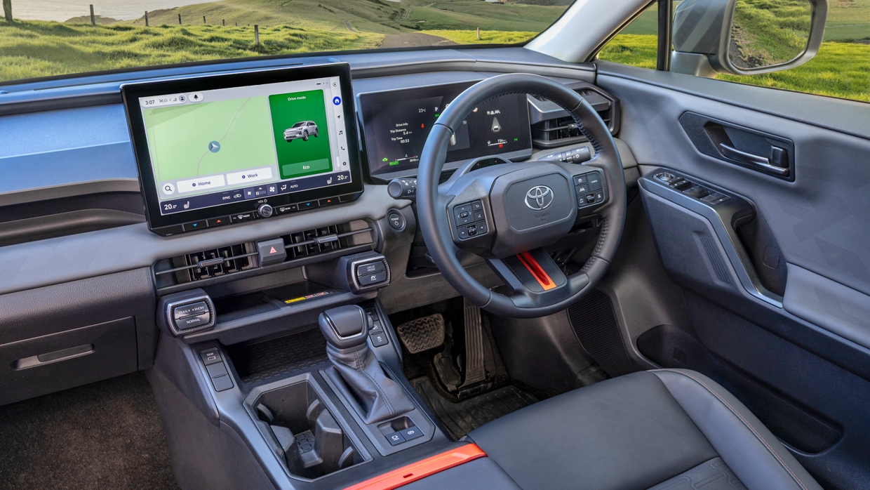 Abgerundet wird die RAV4-Reihe durch die Cruiser-Flaggschiffversion mit Front- oder Allradantrieb, die über einzigartige Funktionen verfügt 20-Zoll-Leichtmetallfelgenverbesserte LED-Scheinwerfer, Panoramadach, beheizte äußere RücksitzeSitzbezüge mit Lederakzenten, Head-up-Display, zwei kabellose Ladegeräte, ein digitaler Rückspiegel und ein JBL-Audiosystem mit neun Lautsprechern.