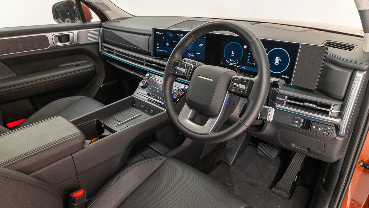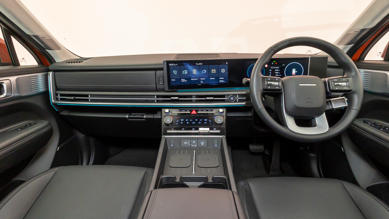 Das zusätzliche Kunstleder und das „Wildleder“ heben die Präsentation und den Premiumwert hervor, ebenso wie die beiden Ladepads, die möglicherweise erst dann besonders praktisch erscheinen, wenn Sie mit ihnen leben. Sowohl das Klimabedienfeld als auch das zwei 12,3-Zoll-Displays sind groß, übersichtlich und intuitiv zu bedienen.