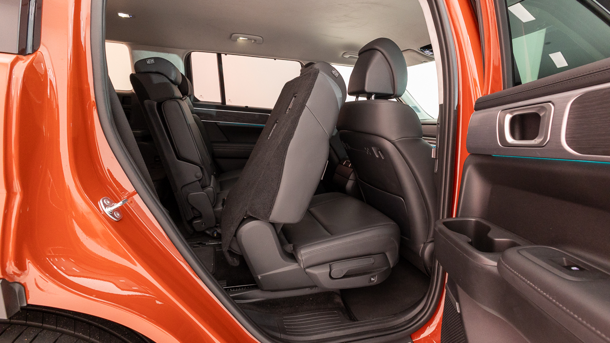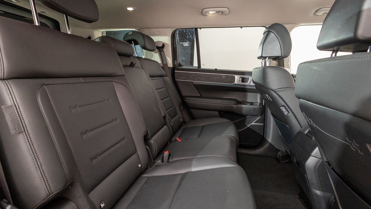 Die Zwei-Wege-Neige- und Schiebeverstellung ist praktisch, um als Fünfsitzer den Platz in der zweiten Reihe zu maximieren oder den verfügbaren Knieraum zwischen der zweiten und dritten Reihe bei Insassen auf allen Santa Fe-Sitzpositionen auszugleichen. Es ist eine echte Angelegenheit für sieben Erwachsene, vorausgesetzt, wie bereits erwähnt, dass man die GVM nicht überlastet – was überraschend einfach zu bewerkstelligen ist.