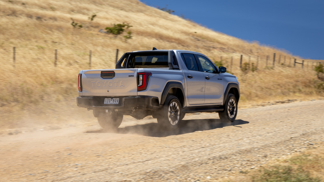 Die Beibehaltung einer schmaleren Spur für die Hilux-Kernreihe erleichtert möglicherweise das Durchqueren von Seitenstraßen, aber der SR5 fühlt sich dadurch bei der Geschwindigkeit weniger sicher an.