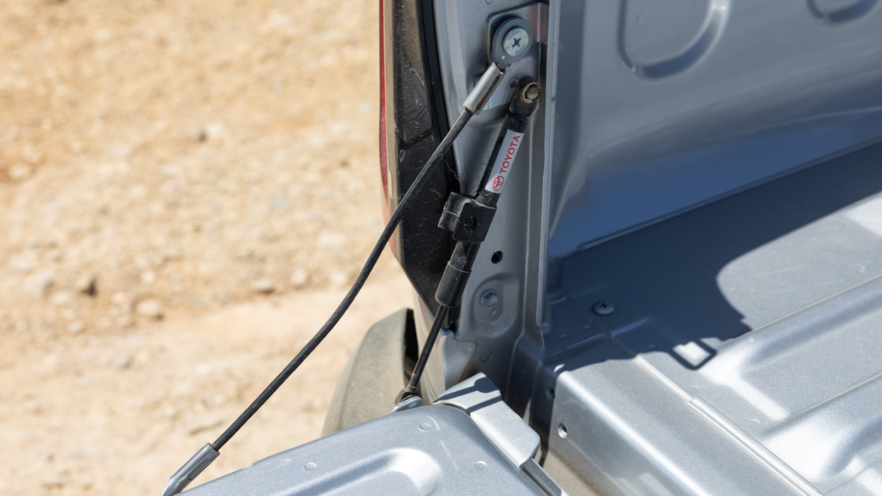 Selbst in der gehobenen SR5-Ausstattung fehlt dem Hilux immer noch eine Ladefläche, jede Art von Zusatzsteckdose und er ist auf vier Verzurrpunkte beschränkt. Zumindest die Heckklappe ist schön gedämpft.