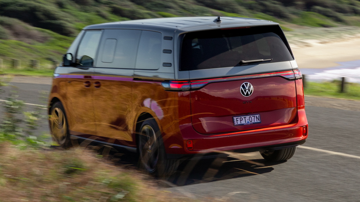 Und dank der gesamten Chassis -Stimmung aus Volkswagens Performance Division – dieselben Ingenieuren, die die Fahrt/Handhabung des MK8.5 -Golf -GTI und R einstellten – steuert auch die Buzz GTX konsequenter, mit besserem Feeling und einer natürlicheren Fortschreitung, wenn sie sich einsetzt als das reguläre Buzz -Pro, insbesondere wenn sie riesige 21er tragen.