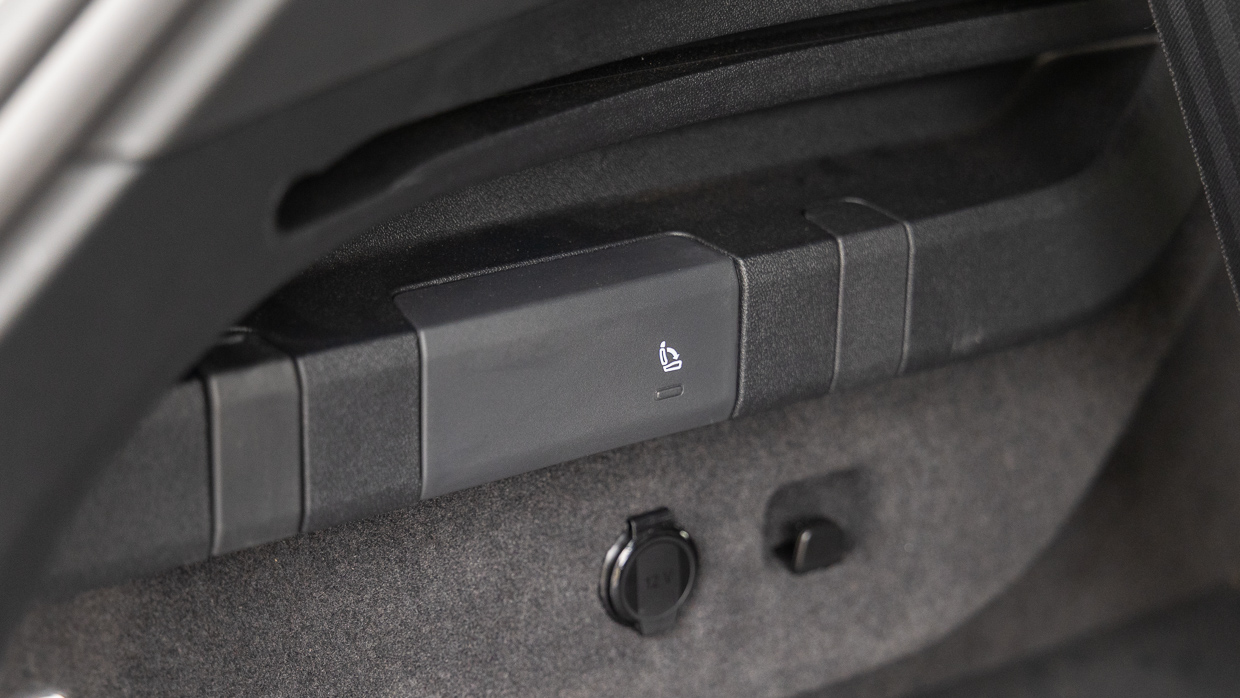 Zur Ausstattung gehören ein Paar USB-C-Ladestationen, eine separate Klimazone, zwei Lüftungsschlitze, eine Aufbewahrungstasche und eine umklappbare Armlehne mit herausklappbaren Getränkehaltern. Die Türoberseiten bestehen leider aus Hartplastik, verfügen aber über eingebaute Sonnenschutzrollos – eine nette Geste.